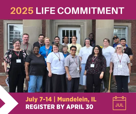 Life Commitment is an 8-day program that provides an opportunity for Catholic religious women and men to contemplate and reflect on their call to embrace a life-time commitment to consecrated life. Those discerning or anticipating profession of final vows gather in the company of their peers with presenters, seasoned in religious life and skilled in adult learning processes, to engage the compelling questions, experiences, and insights that speak to the reality of living vowed religious life in the 21st century.