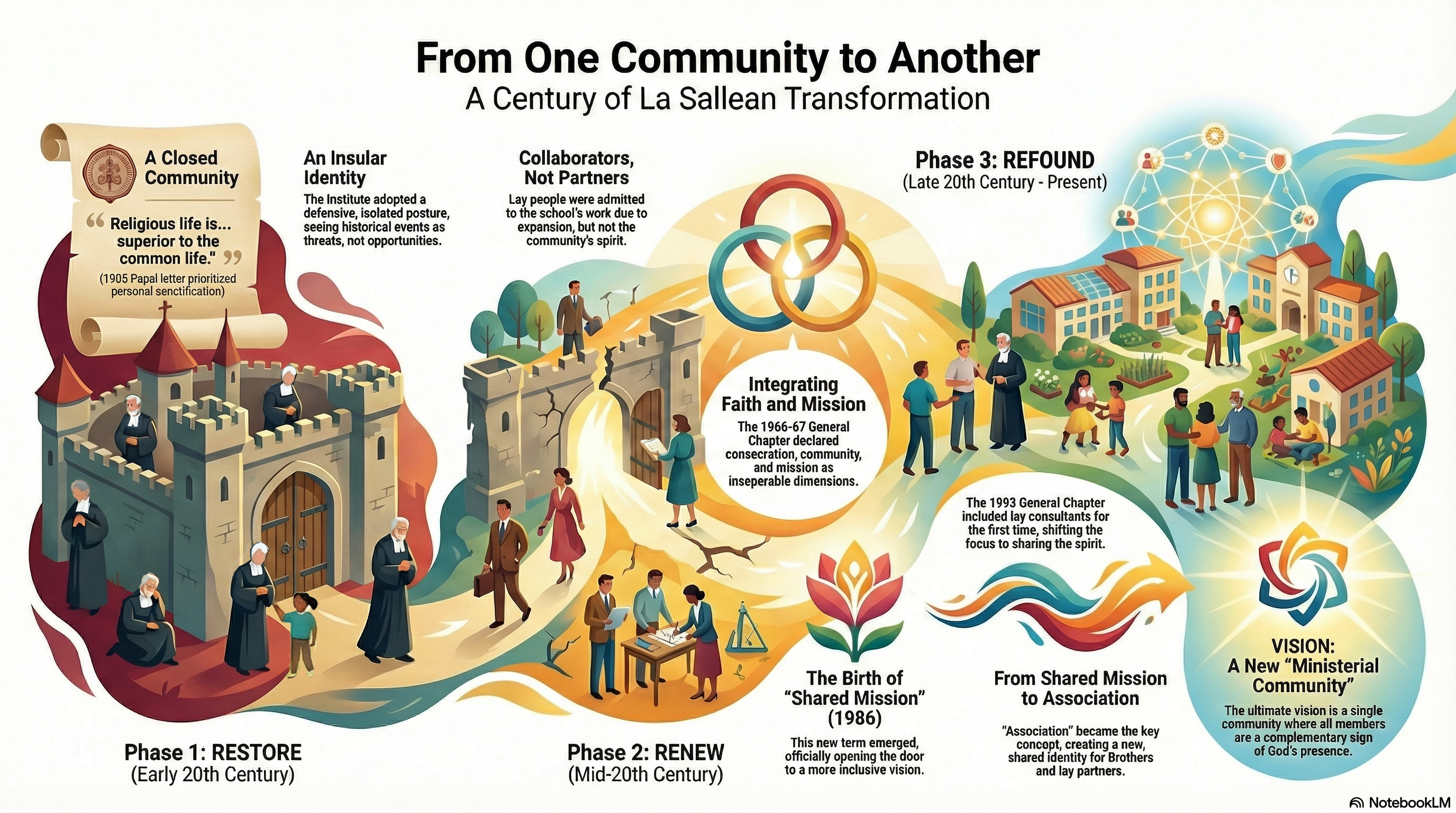 To accompany the reading of the two volumes of his work “From One Community to Another” (Lasallian Studies No. 19), Brother Pedro María Gil, who belongs to the Arlep District (La Salle in Spain and Portugal), has shared some infographics produced using Artificial Intelligence.